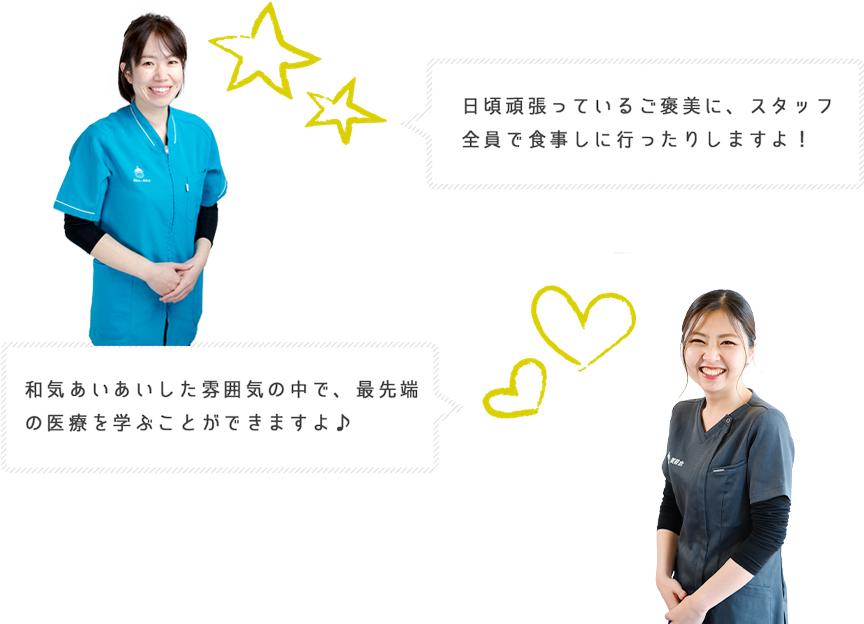 ・患者様はもちろん、スタッフ同士のコミュニケーションも大切にして頂ける方は、ぜひ一緒に働きましょう!