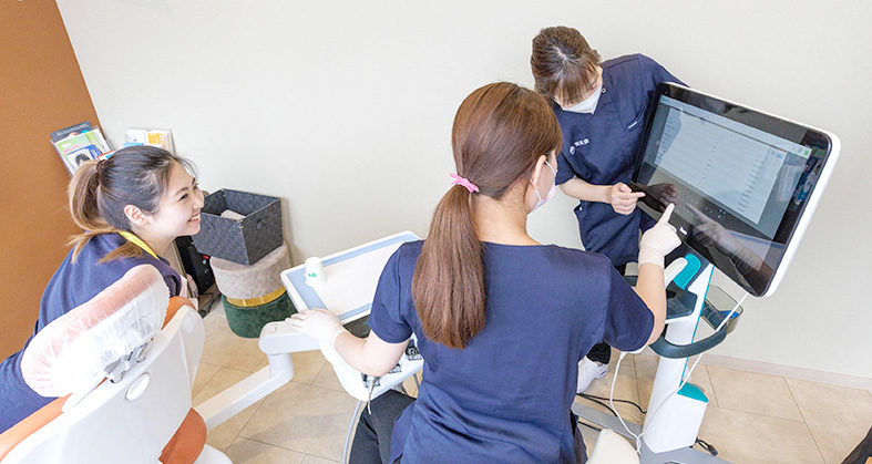 衛生士業務の他には、治療のアシスタントについたり、初診の患者様のカウンセリングや治療後の説明をしたりもします。