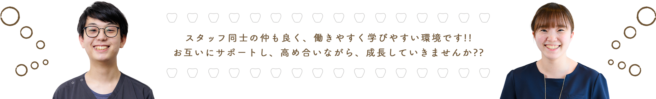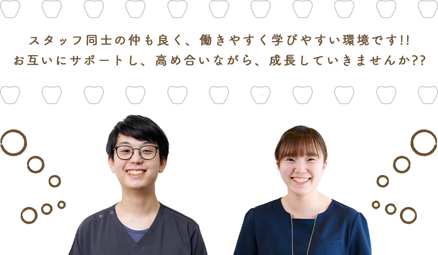 私は、勤務医時代に非常に良い歯科医院で働くことが出来たため、本当に成長することができました。是非、あなたも同じように良い職場で働き、成長する経験をして欲しいという想いから、当院のチームメンバーを募集するため、このサイトを立ち上げました。
